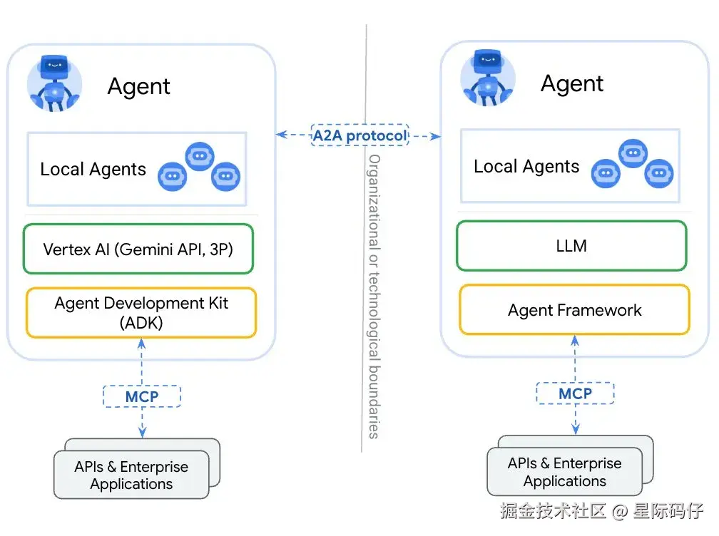 - A2A 协议抹平了用不同框架开发的差异,使 Agent 之间能够灵活组合使用。