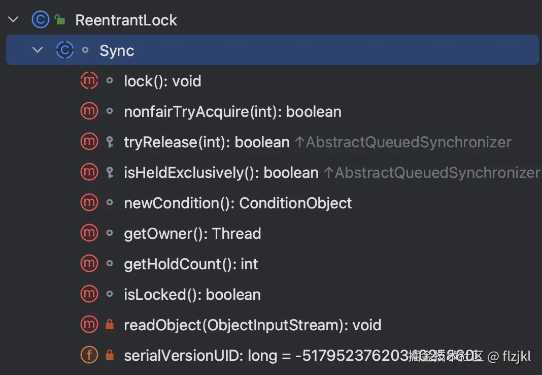 ReentrantLock的内部抽象类,继承自AQS。
