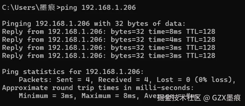 图8 Ping 命令的执行结果