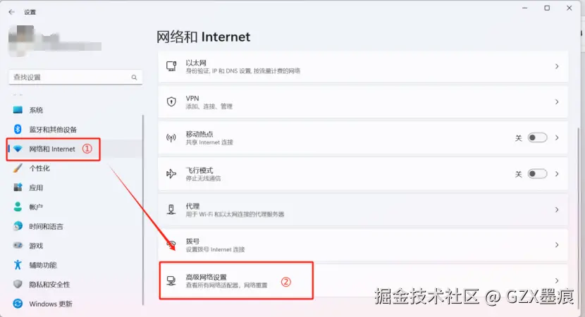 图2 打开高级网络设置