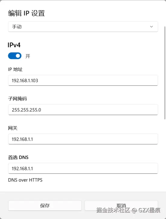 将上述获取的信息填入IPv4的对应框中,点击保存。