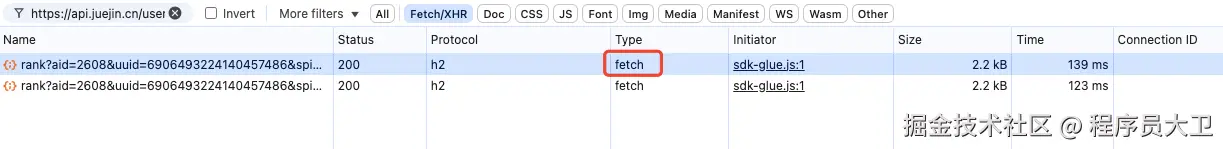 并且这个请求是通过 fetch 发起的: