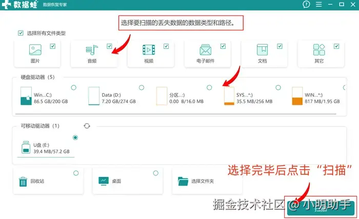 如何找回所有数据?该软件的扫描准备页面上功能分布清晰,电脑小白也能轻松设置个性化的数据恢复准备;