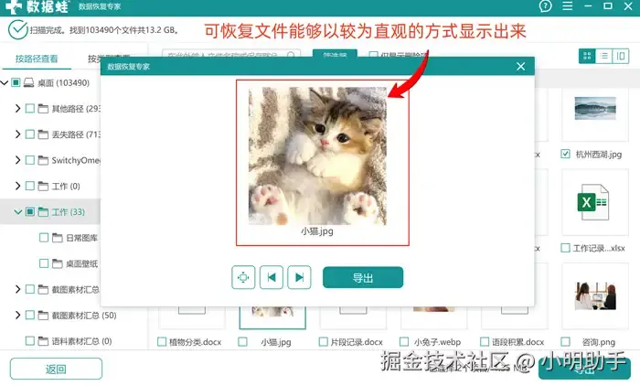 如果需要扫描的文件是图片格式,这款软件还能让可恢复的图片内容显示出来。