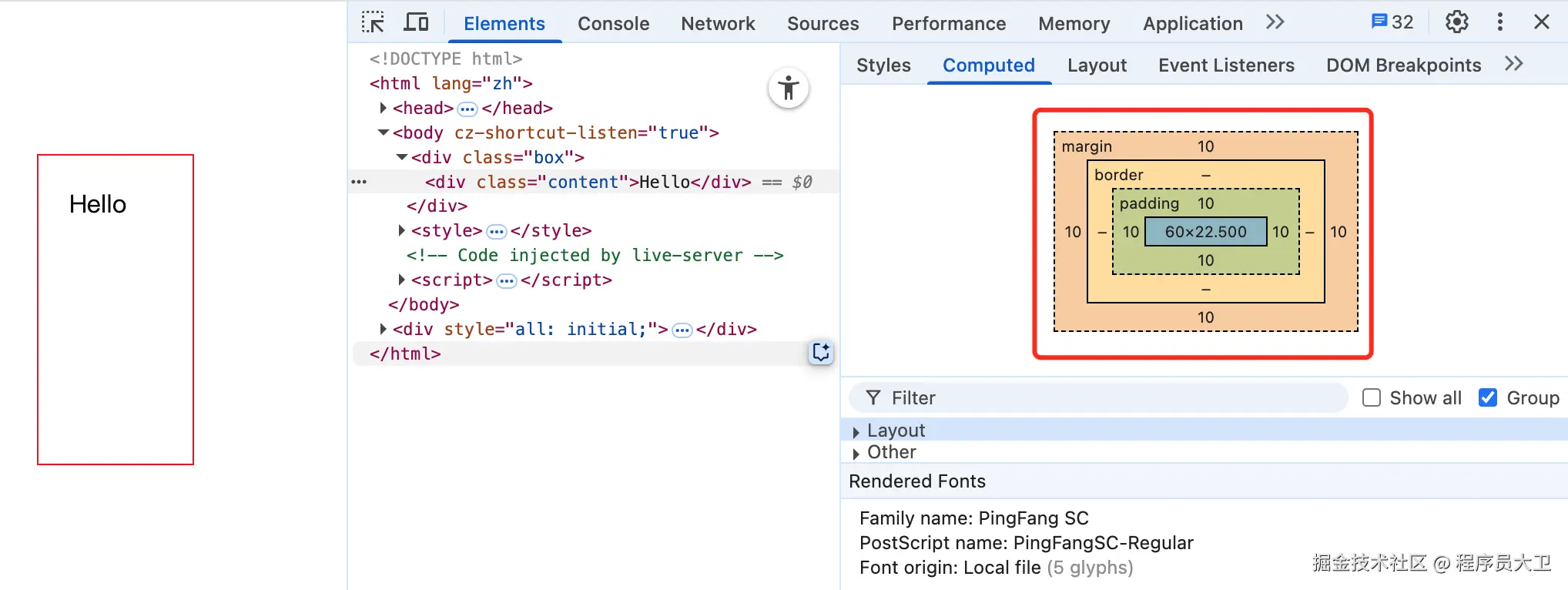 content元素的10%margin 和 padding,都是基于.box的100px宽度计算的,因此最终为10px。