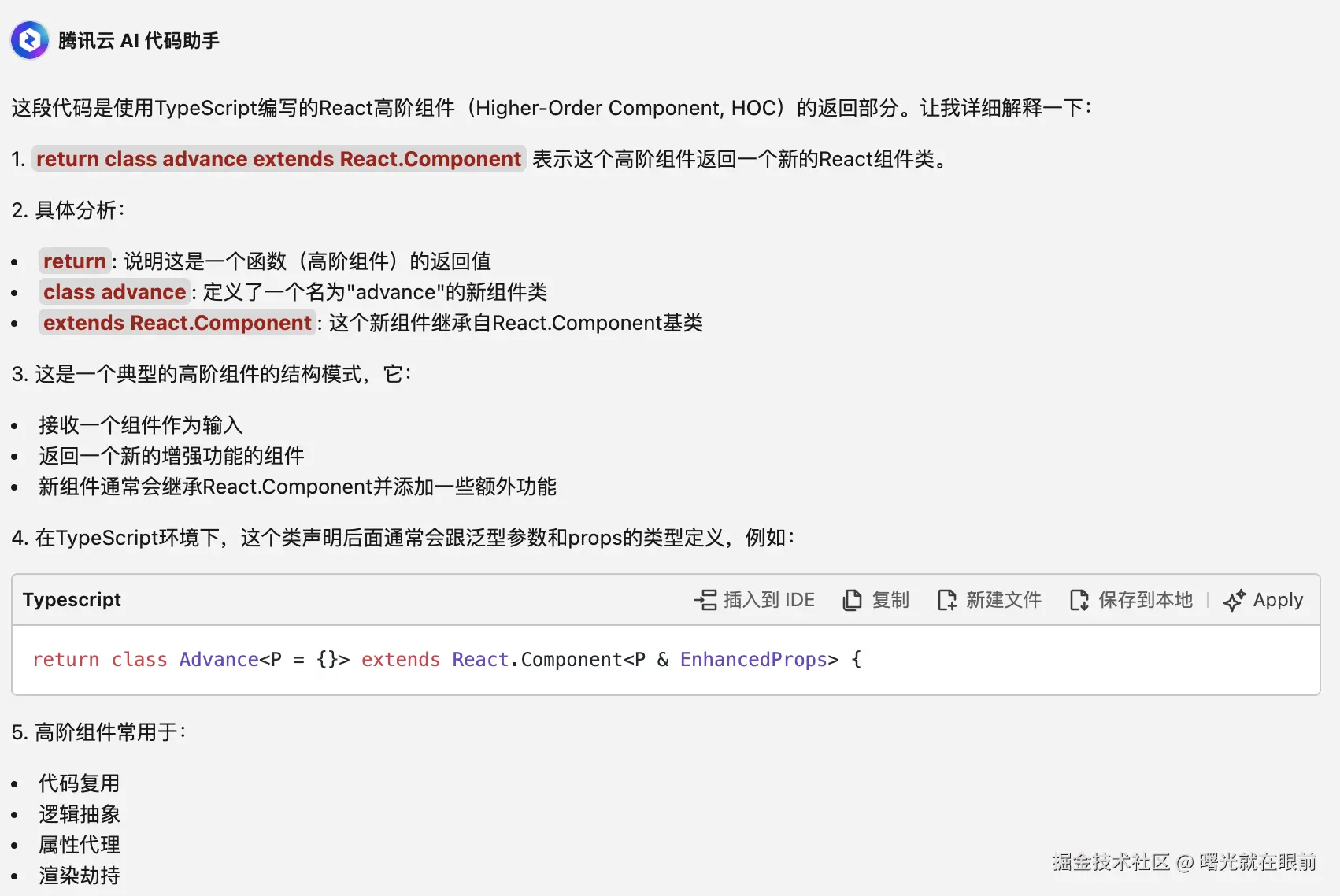 HOC 的作用之一就是解决大量的代码复用、逻辑复用的问题,还有一个重要的作用就是让 props 中放入一些开发者需要的东西