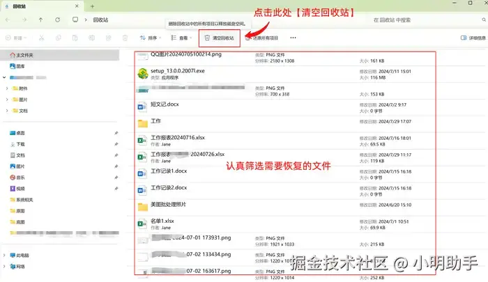 在操作该电脑垃圾清理窍门时,需要用户注意的是,我们要认真检查回收站里是需要恢复的文件,否则很容易因为自己的疏忽而丢失重要的文件。