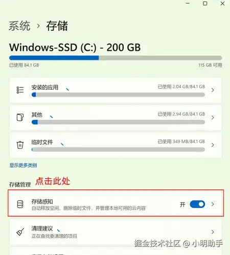 电脑垃圾太多怎么才能清干净?在电脑设置上我们可以选择开启【存储感知】功能。开启该功能的话,电脑系统能够自动进行电脑垃圾清理,帮助用户删除无用文件,释放空间。开启该功能只需要打开【设置】,点击【存储】,在【存储管理】上开启【存储感知】功能。