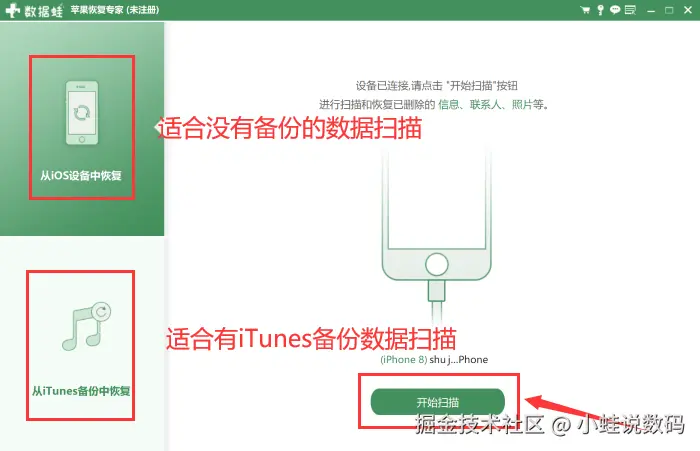 如果你没有开启iCloud或iTunes备份,或者备份中不包含你想要恢复的照片,那么如何恢复回收站清空的照片呢?我们还可以尝试使用专业的数据恢复软件——数据蛙苹果恢复专家。
