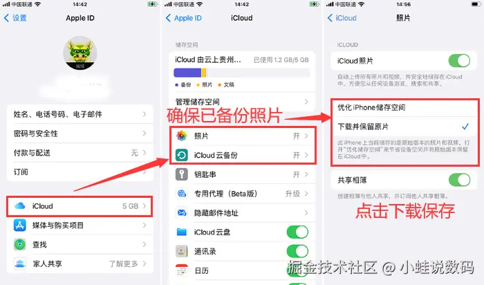 操作步骤:当你意识到照片被删除时,立即进入手机的 【设置】 ,点击 【个人头像】 ,选择 【iCloud】 选项。在这里,你需要确认 【照片】 功能是否已经开启。如果已开启,点击 【下载并保留原片】 ,尝试从iCloud备份中恢复被删除的照片。