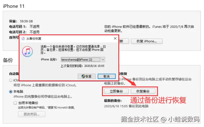 注意:iTunes备份也存在时效性问题,且恢复过程将覆盖当前设备上的所有数据,因此在使用前请务必谨慎考虑。