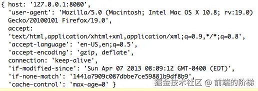 读取头很简单。通过检查request.header对象来读取头信息,这是头键/值对的一对一映射。要从前面的示例中获取accept头,只需读取request.headers.accept。