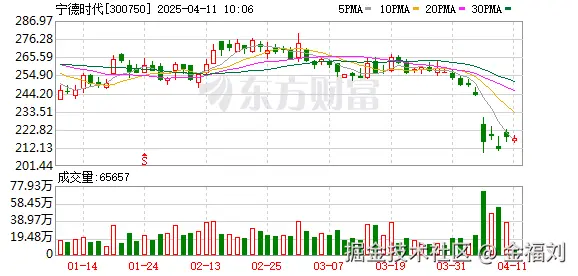 宁德时代(300750.SZ)的股票行情分时走势图,来源:见水印