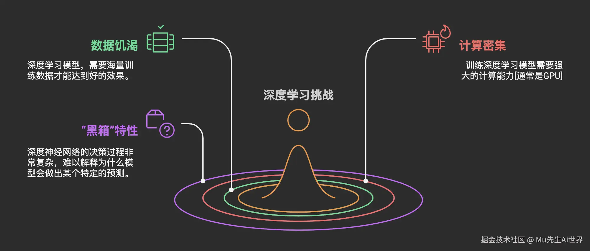 ▶ 计算密集: 训练深度学习模型需要强大的计算能力(通常是GPU),训练时间可能很长(从几小时到几周甚至几个月)。这直接影响到研发成本和迭代速度。