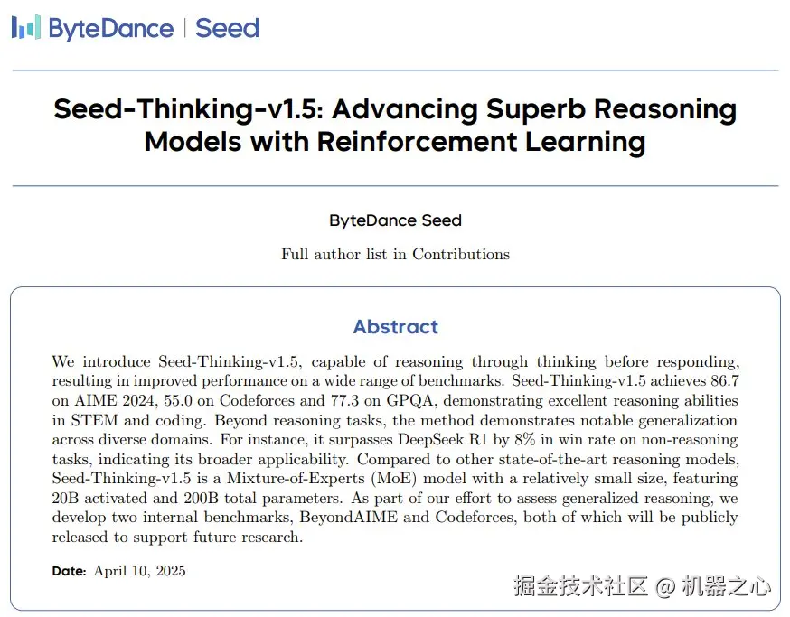 报告标题:Seed-Thinking-v1.5: Advancing Superb Reasoning Models with Reinforcement Learning