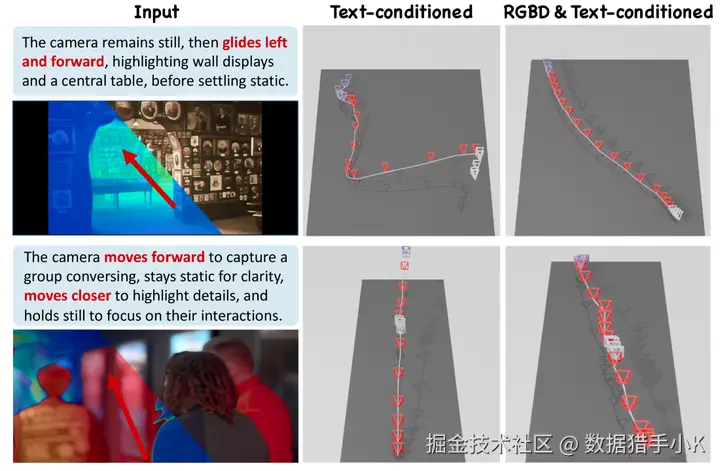 模拟拍摄:在实际拍摄之前,导演和团队可以通过虚拟现实设备或者电脑软件,预览这个生成的轨迹,看看镜头运动是否符合预期。如果需要调整,只需要修改一下描述,模型就会重新生成新的轨迹,非常方便。