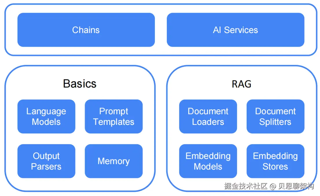 - AI Services:AI 服务,将与 LLMs 和其他组件交互的复杂性隐藏在简单的 API 后面。