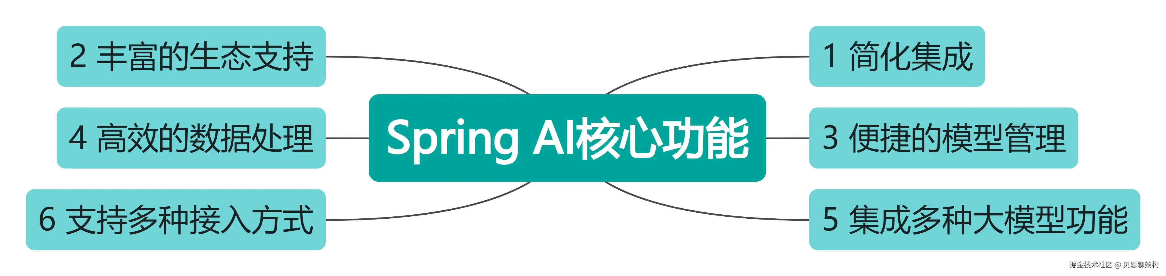 - Spring AI Core:核心模块,提供基本的抽象和工具,如模型加载、预测执行等功能,是与各种 AI 框架交互的基础。