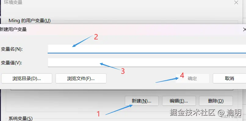 打开环境变量设置,首先新建用户环境变量和系统变量,两个变量变量名和值都是一样的,变量名为VOLTA_HOME,值为剪切后的Volta文件夹路径,我这里是D:\Volta