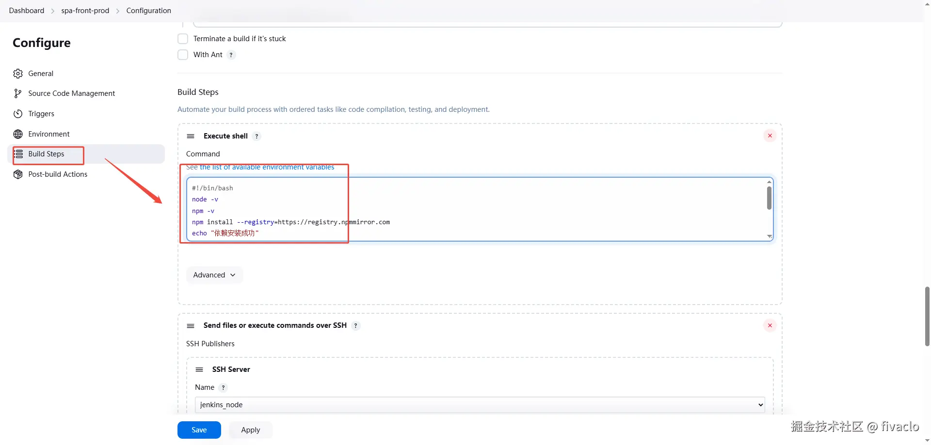 选择 execute shell,填写打包命令。记得替换你自己的打包命令。
