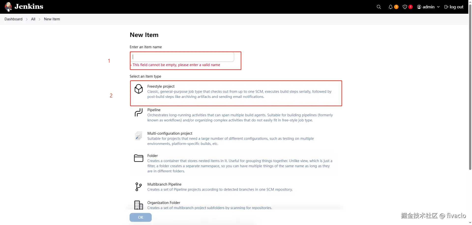 19. 填写项目项目 item name,选择 自由风格 freestyle project