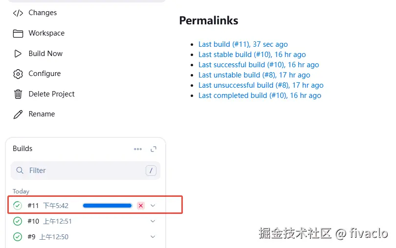 查看构建触发者,可以看到是自动构建的。且是刚刚更新的最新代码。