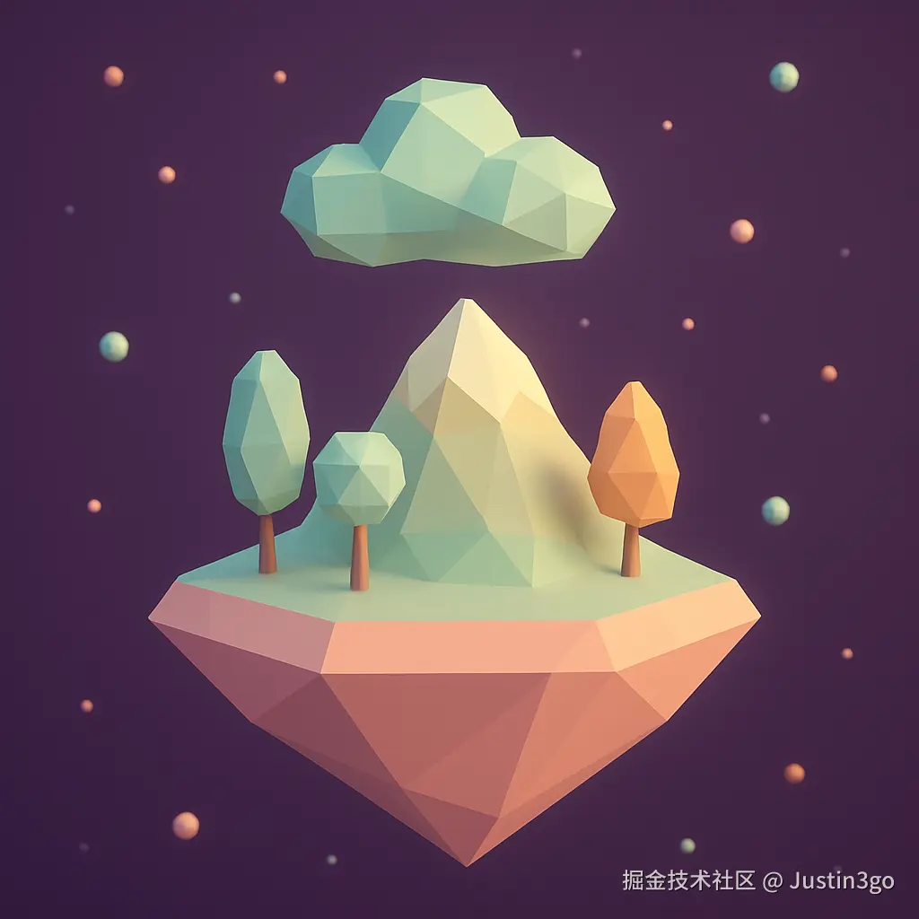 A minimalist 3D island floating in space, low-poly design with pastel colors.(一座漂浮在太空中的极简3D岛屿,低多边形设计,柔和马卡龙配色)