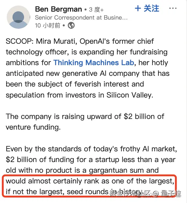 去年 10 月刚传出 Mira Murati 离职创业时,就已经被曝出说吸金超 1 亿美元(约合 7 亿人民币)。