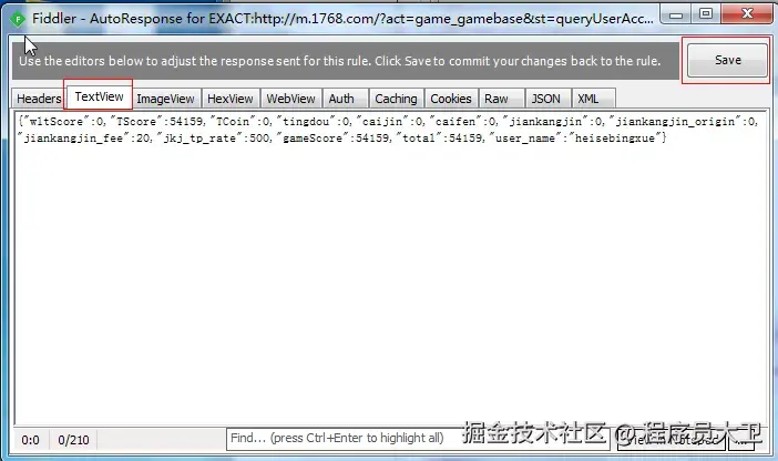 3.切换至 TextView,修改返回内容或响应头,然后点击保存: