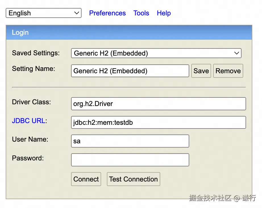 项目启动后可以通过 http://localhost:8080/h2-console 可视化访问数据库
