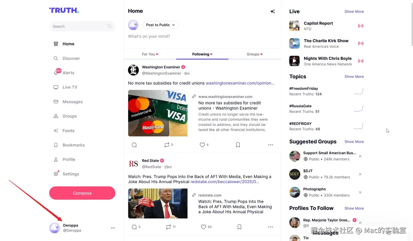 或者加入你感兴趣的Group,到此,你的Truth Social账号就注册成功了。Truth Social目前还没有中文版,如果你英语不好,可以安装一个浏览器插件:Immersive Translate,沉浸式翻译:全网口碑炸裂的双语对照网页翻译插件,实时翻译,非常好用。安装以后的效果: