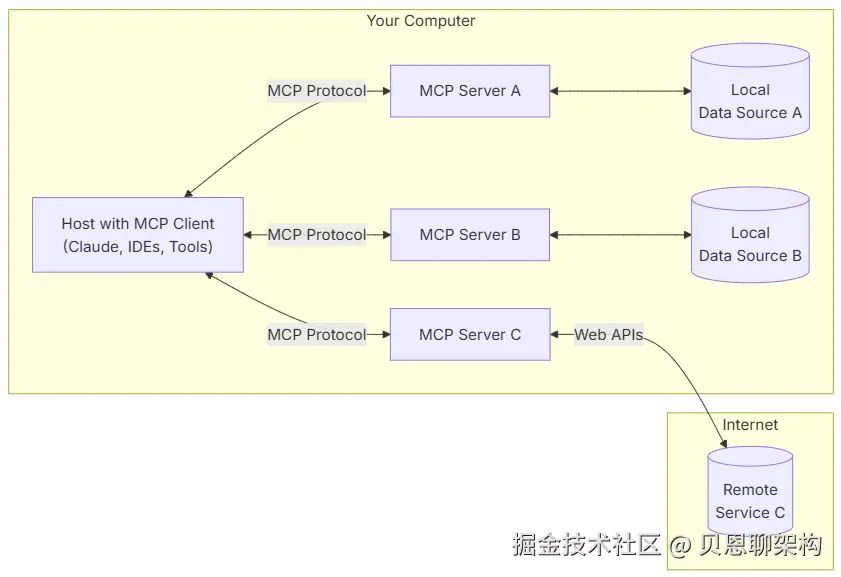 - 本地数据源:MCP服务器可以安全访问的计算机文件、数据库和服务