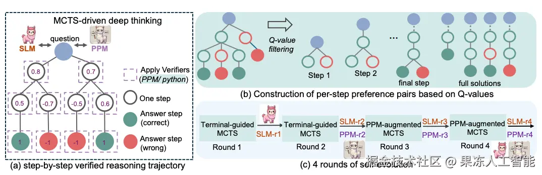 rStar-Math整体概览。注意这里的“验证推理轨迹”模块。