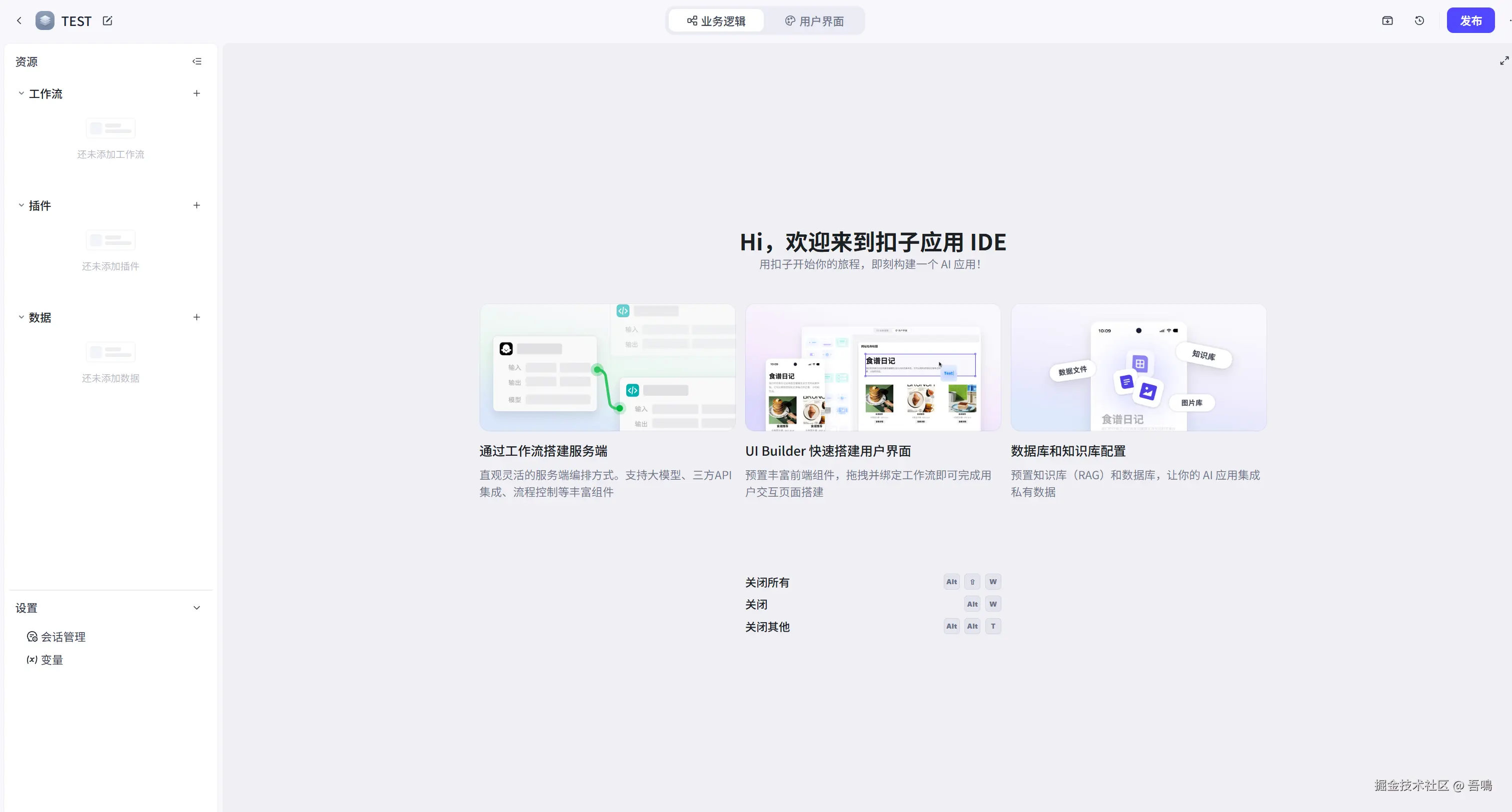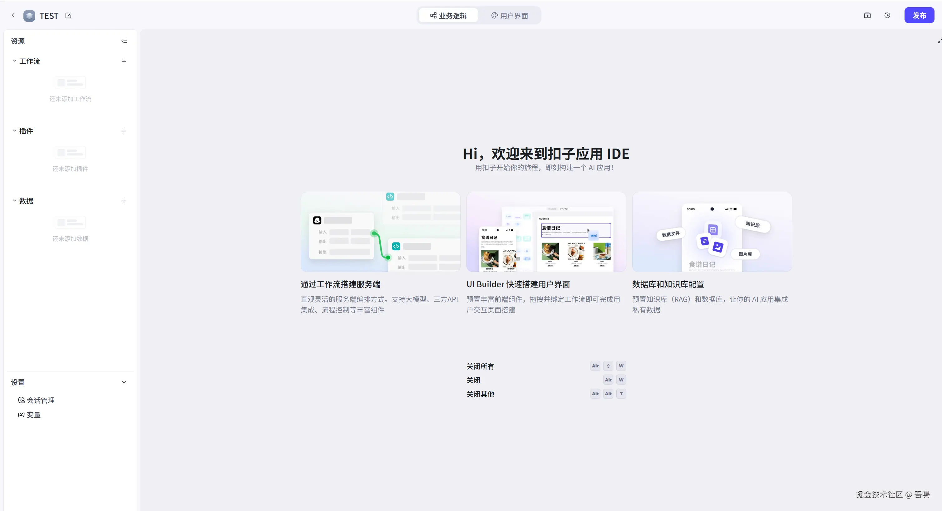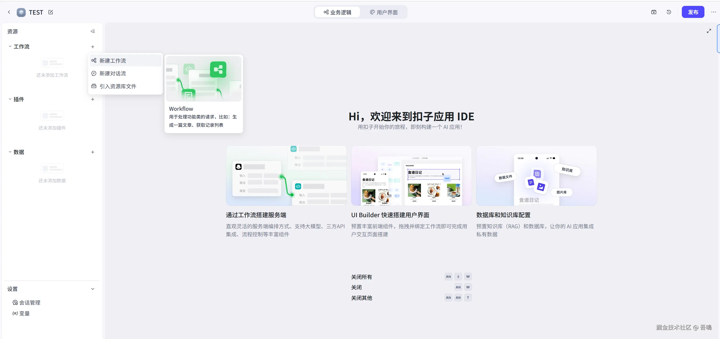 到这里,我们的AI应用的UI界面就搭建好了,接下来我们要开始搭建工作流了。