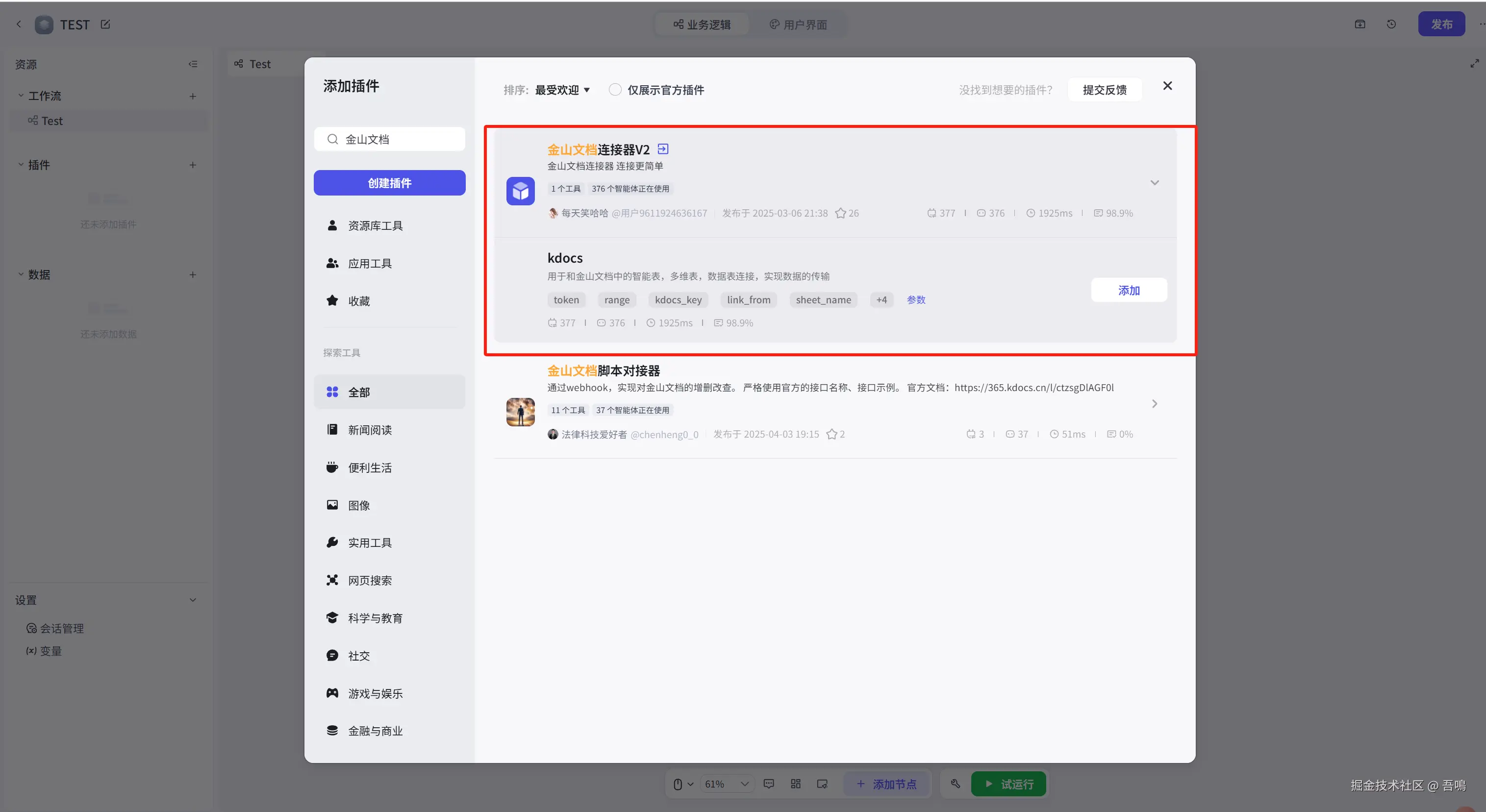 还要记得给你的脚本授权,否则调试的时候,在写金山文档的节点会提示“你的操作权限不足”。