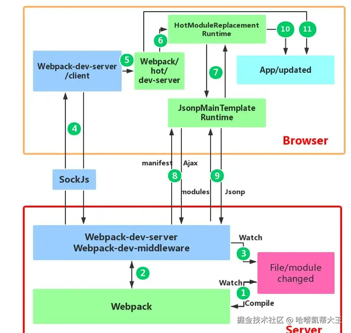 - 客户端对比出差异后,会向WDS发送AJAX请求来获取这些更改内容,后续客户端就可以借助这些信息发送JSONP请求获取 chunk 的增量更新。