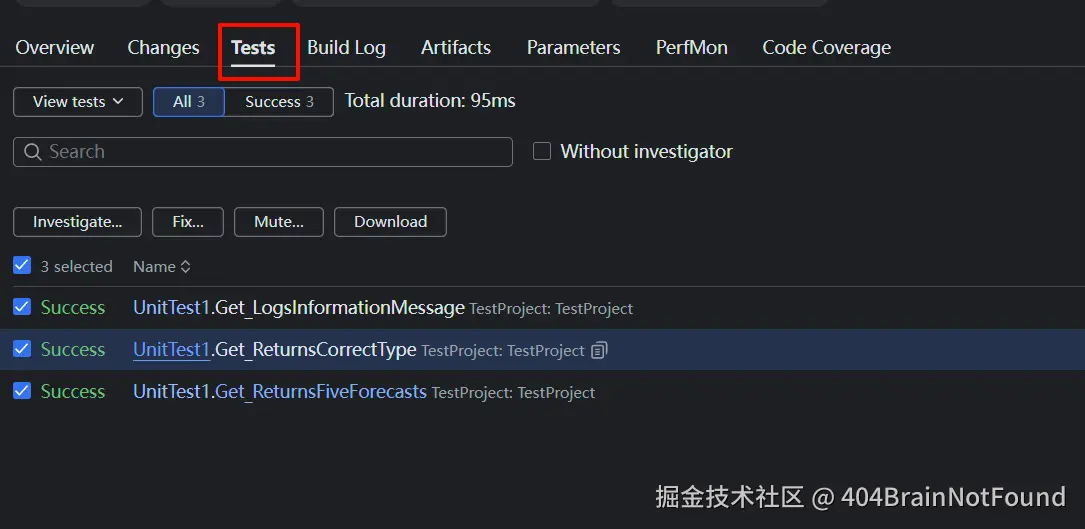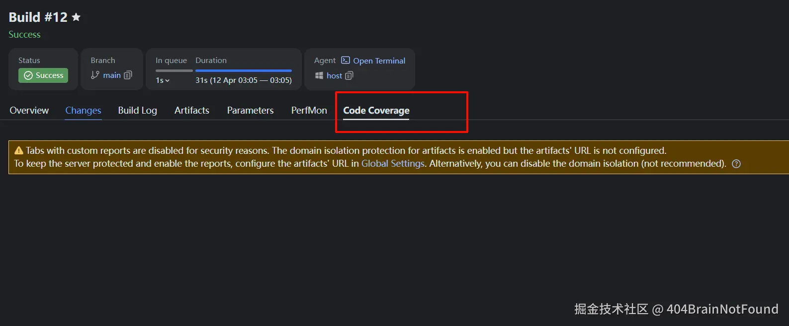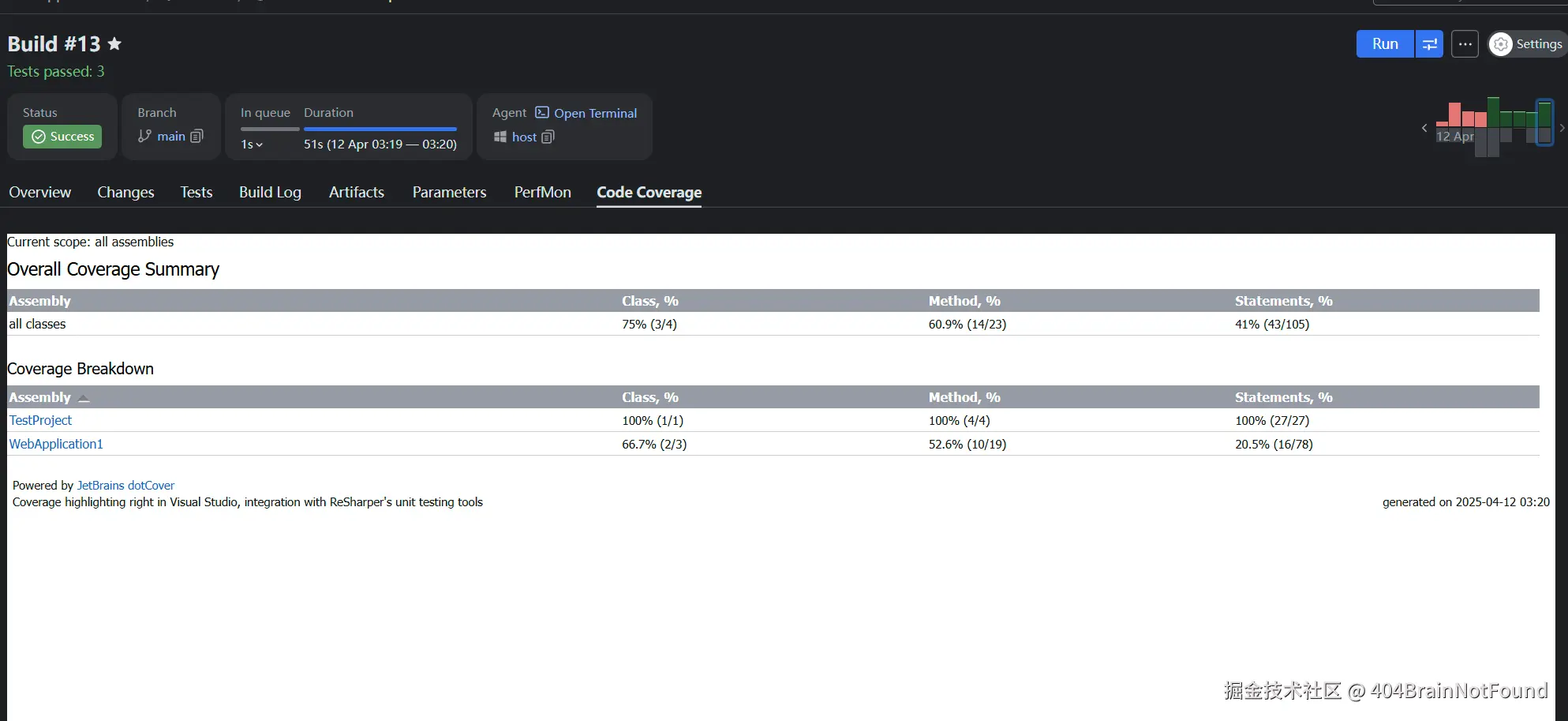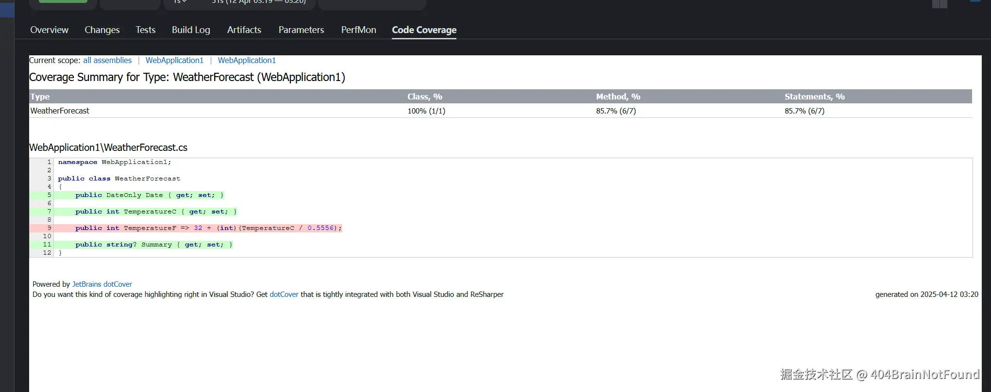 运行构建,在Code Coverage选项卡下查看测试覆盖率结果: