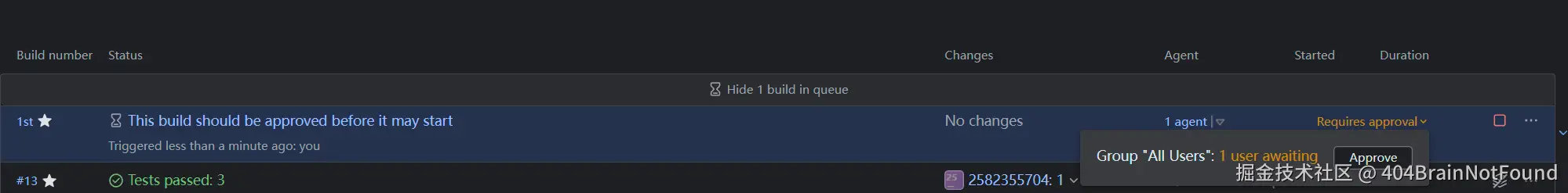 Build Approval 构建功能 允许用户通过使用审批手动控制构建的开始。此构建功能确保构建在未获得审批规则中定义的个人用户或组的批准时不会启动。对于持续集成来说,部署前审批非常重要。