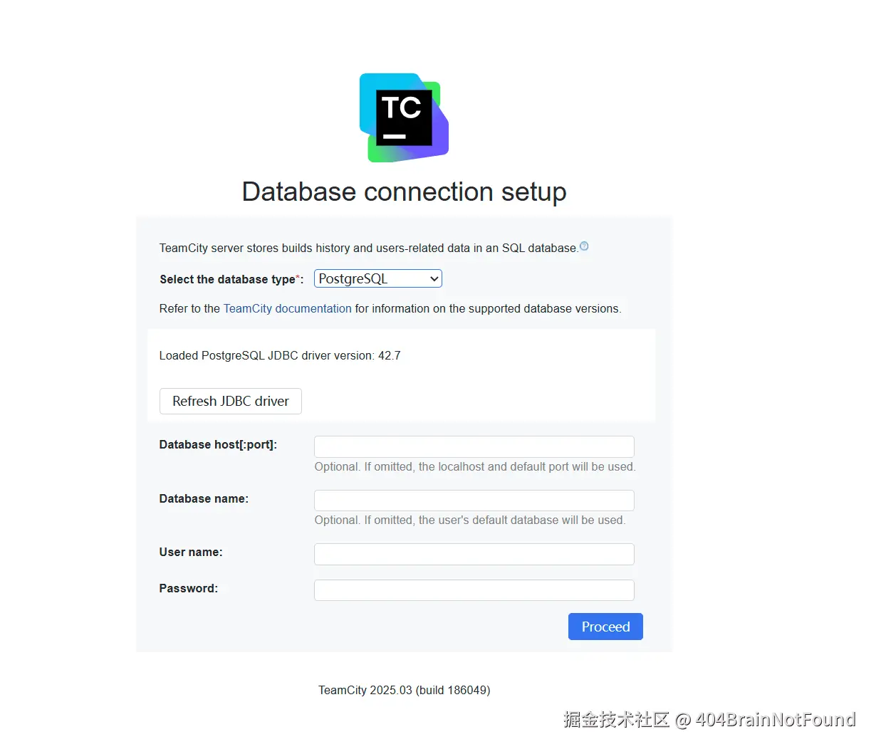 建议选择外部数据库如PostgreSql,若嫌麻烦可选内部数据库HSQLDB。后续如需迁移数据库,可通过TeamCity安装目录下的bin/maintainDB脚本实现,具体可查看:数据库迁移指南