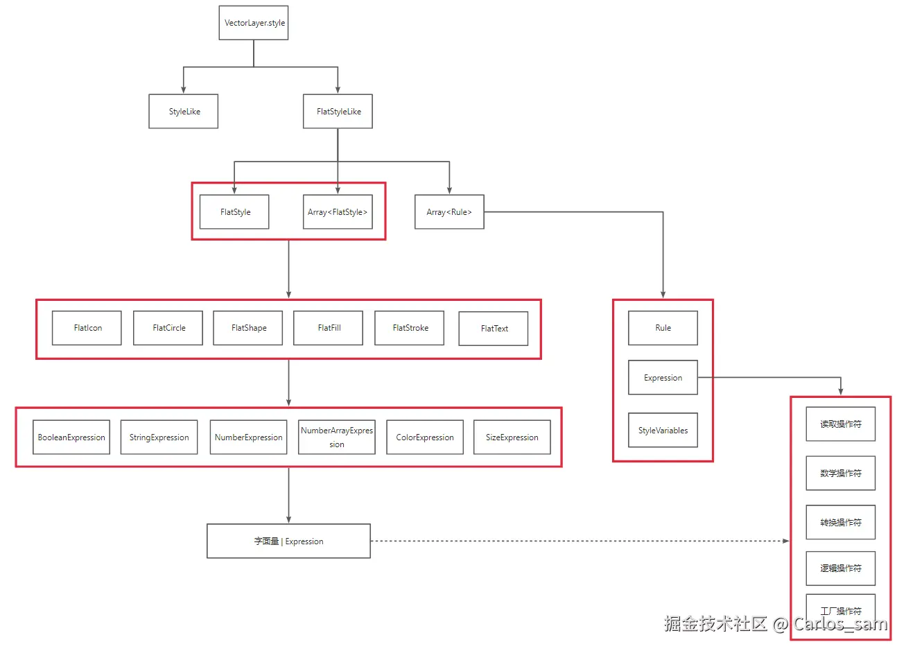 Expression则是由操作符组成的可以表达一定逻辑的表达式,请查看这个文档了解更多有关表达式的内容(OpenLayers v10.5.0 API - Module: ol/expr/expression)