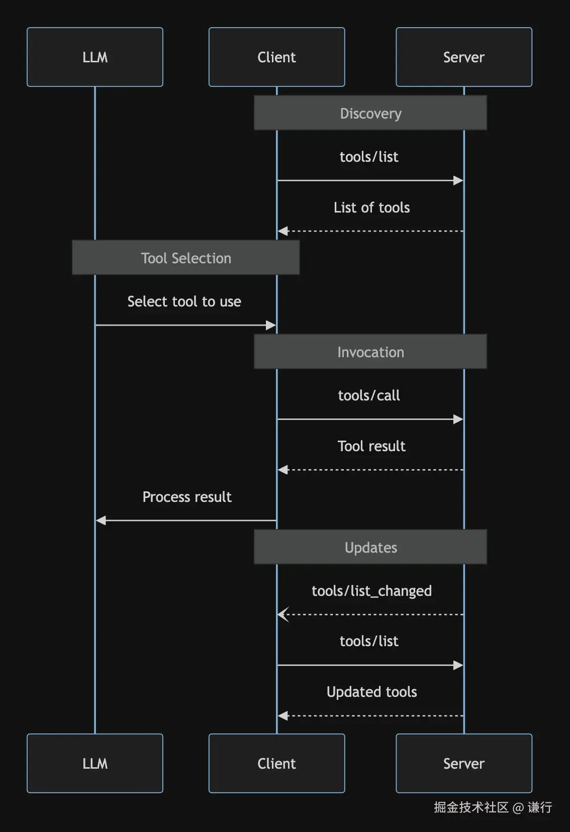 - 双方进行功能协商,确定配置 Server 提供的可用资源/工具列表,为后续调用做好准备
