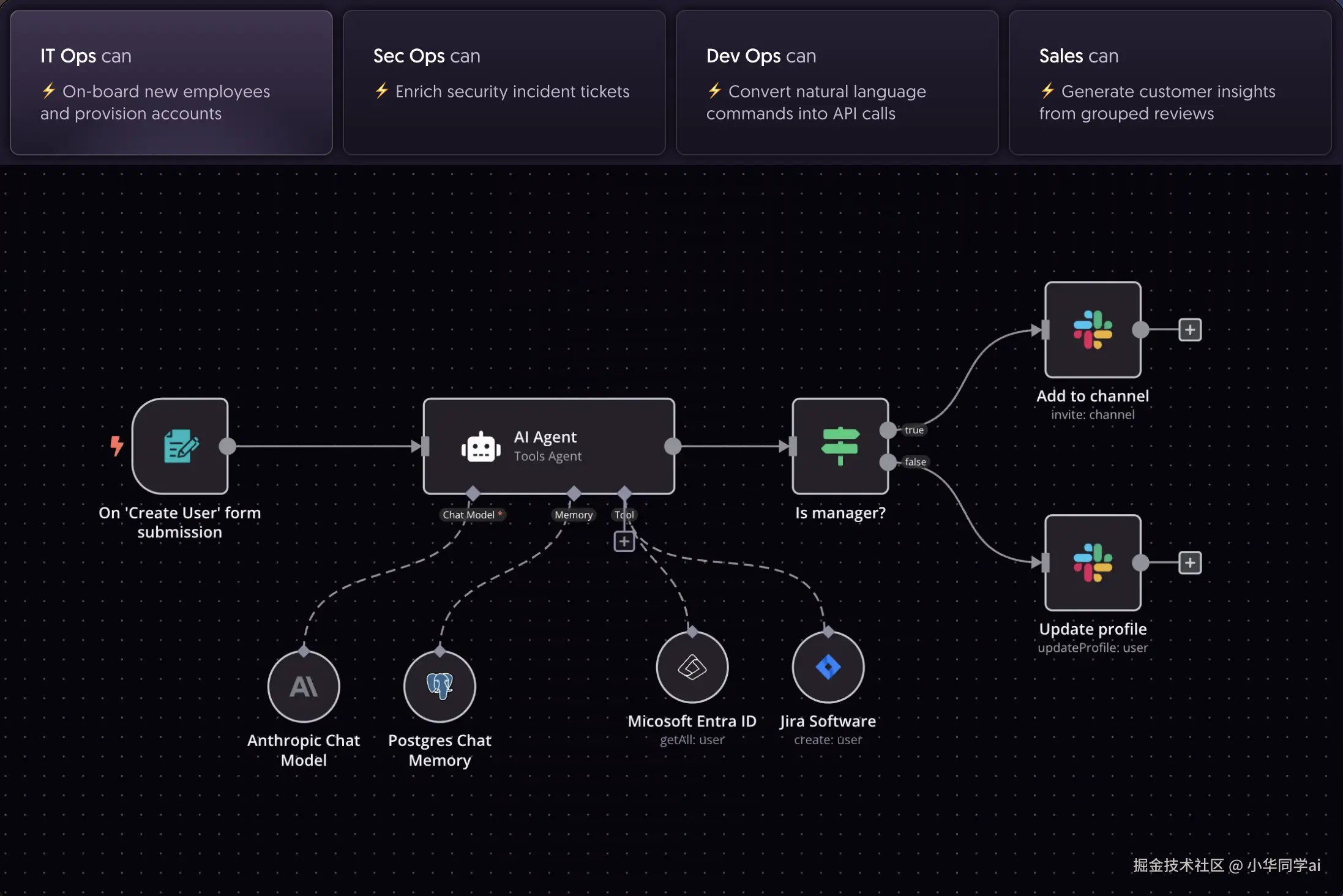 - IT 运维:自动创建员工账号/权限配置(节省 200+ 小时/月)