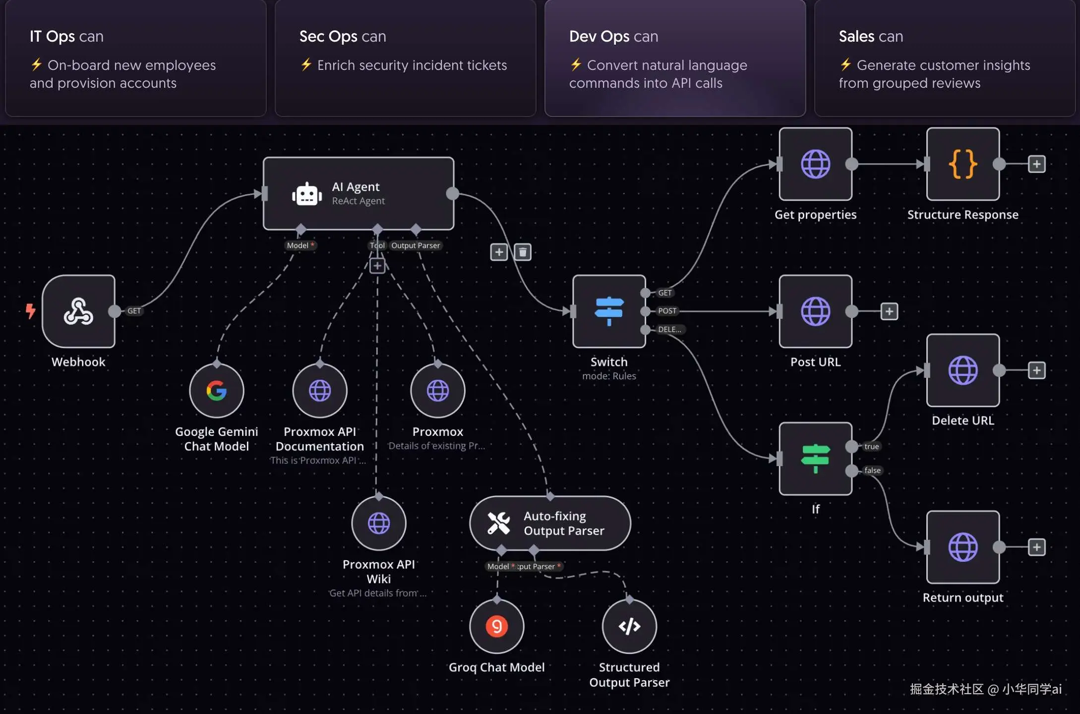 - 可视化拖拽构建:连接 400+ 应用节点,支持条件分支/错误重试