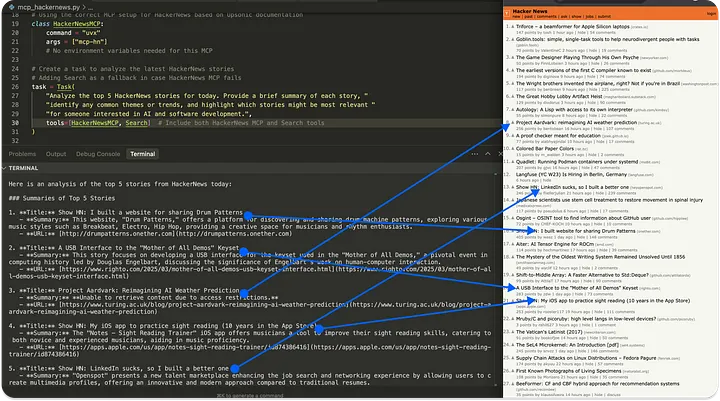 tools=[HackerNewsMCP, Search] # Include both HackerNews MCP and Search tools