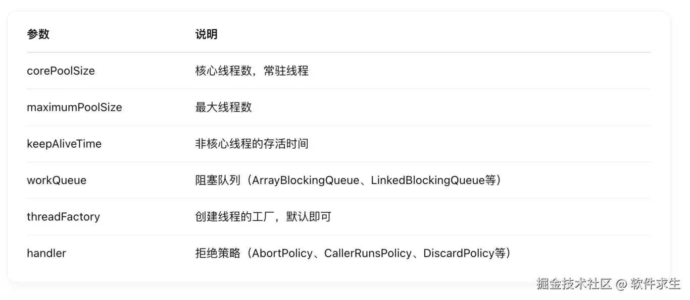 - 别忘了设置合理的拒绝策略,比如 CallerRunsPolicy 能在任务过载时回退到调用者线程执行。
