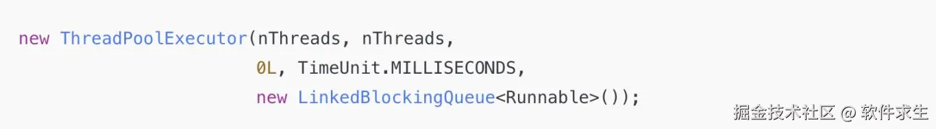 重点来了:它用了一个无限长的阻塞队列LinkedBlockingQueue!