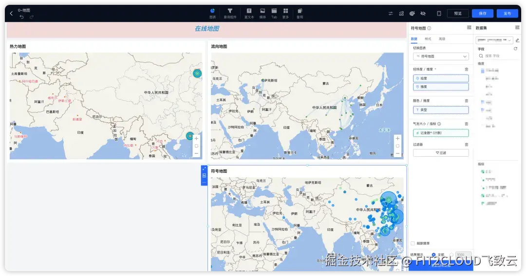 DataEase v2.10.7 LTS版本在线地图正式支持高德地图、天地图(国家地理信息公共服务平台)和腾讯地图三大地图服务,用户可基于业务需求自由切换地图引擎,提升地理数据的可视化能力。