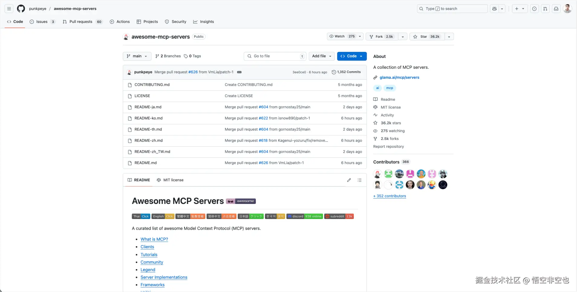 这是一个GitHub仓库,由用户 punkpeye 创建,旨在收集和展示各种 Model Context Protocol (MCP) 服务器的资源。短短时间内狂揽 36k+ star,精选 MCP 服务器一网打尽,截止目前,已经收录 3000+ 开源的 MCP Servers。