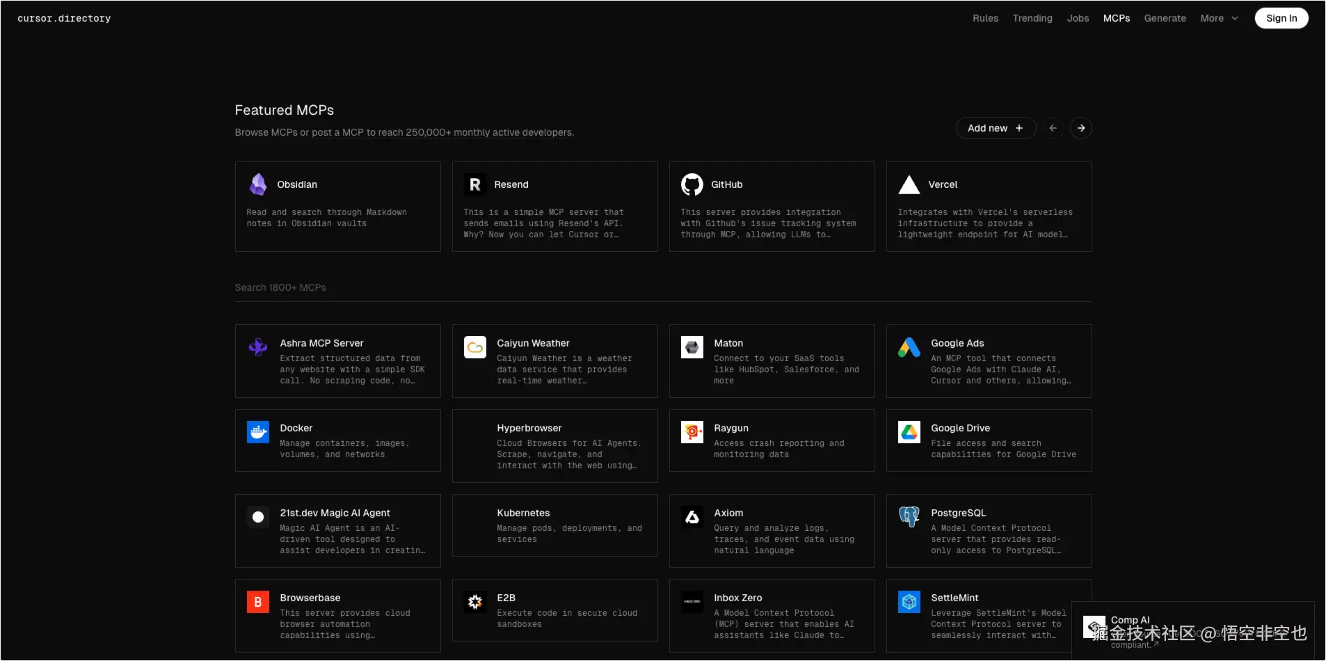 - 全面的服务器列表:mcp.so 提供了一个丰富的 MCP 服务器列表,涵盖了各种工具、服务和应用场景。
