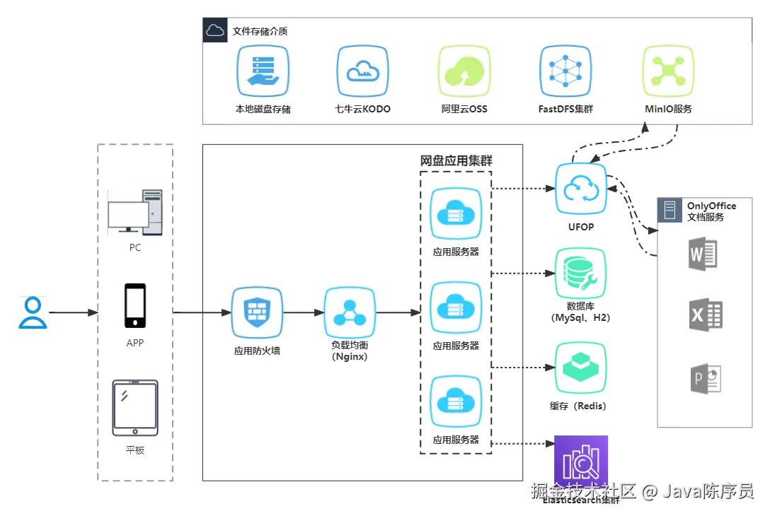 - 多种存储方式:支持本地磁盘、阿里云 OSS 对象存储、FastDFS 存储、MinIO、七牛云 KODO 对象存储等